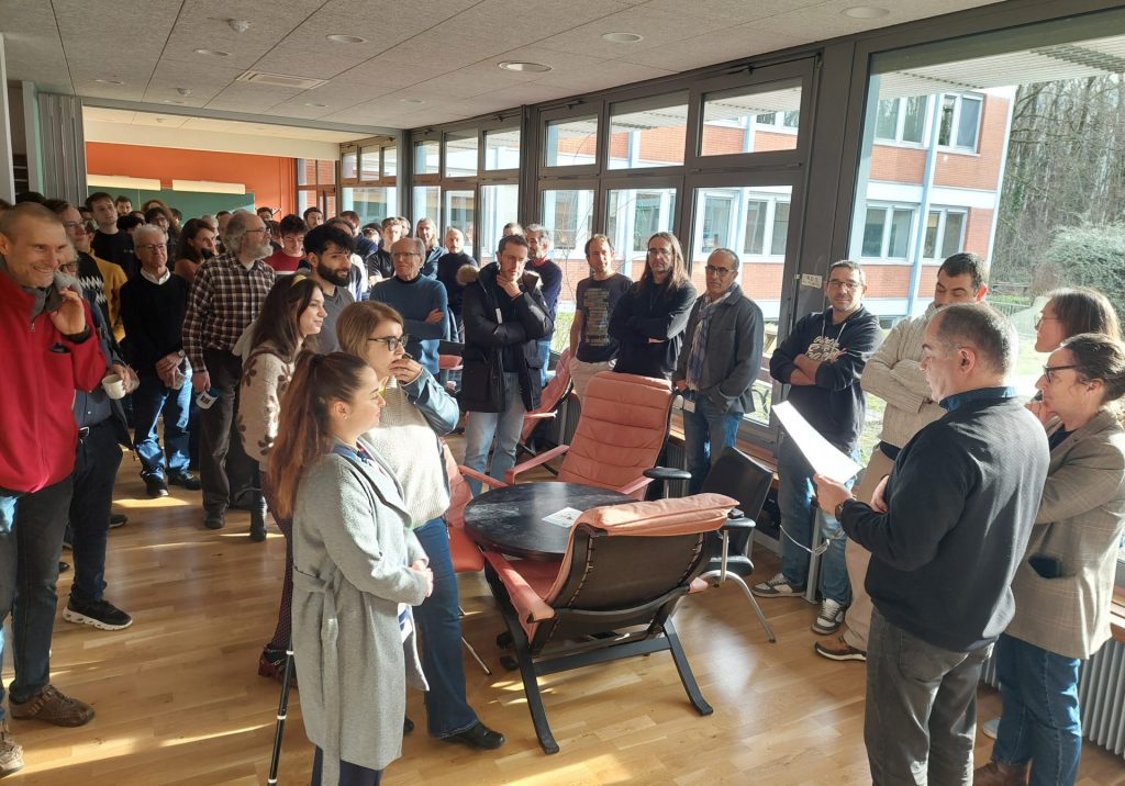 Cette collation a permis diverses prises de parole sur le déroulement de ce projet de la Salle des Echanges, depuis la naissance de son idée jusqu’à son achèvement. Catherine Pépin, ancienne Cheffe de l’IPhT, est revenue sur les détails de cette entreprise en remerciant tous ses participants.